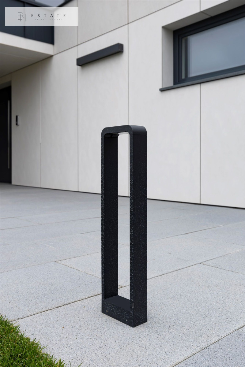Oświetlenie zewnętrzne budynku – oświetlenie boczne budynku zamontowane na całej długości uskoku budynku neon IP65. Wejście do domu i taras ogrodowy neon IP65, dodatkowo na tarasie 6 oczek oświetleniowych. Oświetlenie wjazdu do garażu neon IP65 zainstalowany w progu wjazdu do garażu, zaświecany czujką ruchowo zmierzchową. Przed wjazdem do garażu na ścianie po prawej i lewej stronie bramy garażowej zainstalowano nowoczesne hiszpańskiej produkcji kinkiety led, oświetla góra-dół. Przy wejściu do domu 1m kinkiet ledowy oświetla góra-dół.