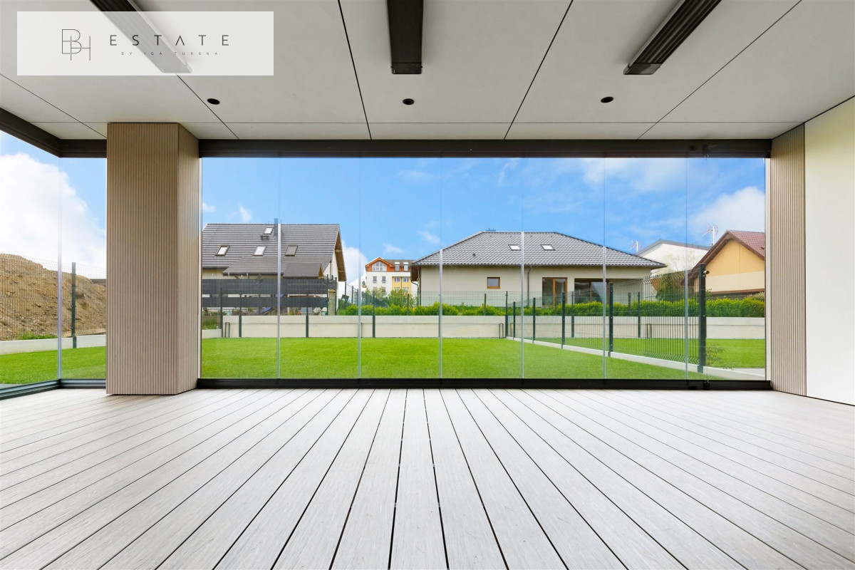 Taras – 21m2 wraz z przeszkleniem tarasowym tworzy ogród zimowy do całorocznego wykorzystania. Ogrzewanie z 3 grzejników na podczerwień zamontowanych na suficie tarasu.