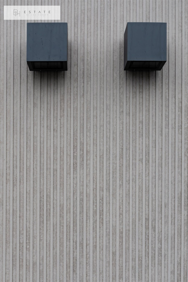 Elewacja budynku – wykonana w technologii wentylowanej z wykorzystaniem płyt equitone. Izolacja to wełna o najlepszym współczynniku izolacyjnym 20cm. Zastosowano 3 różne płyty gładkie i ryflowane by podkreślić nowoczesny i unikatowy charakter budynku.