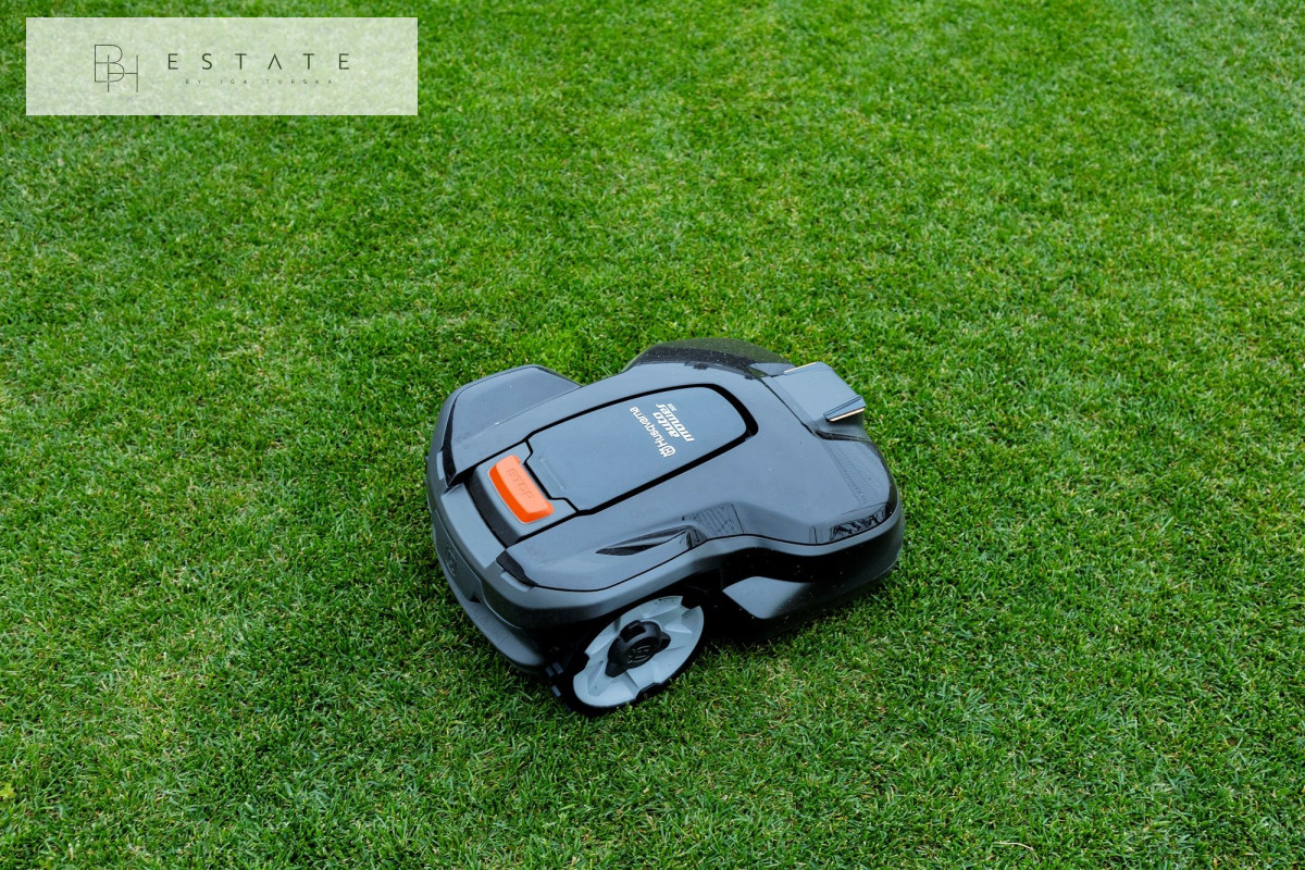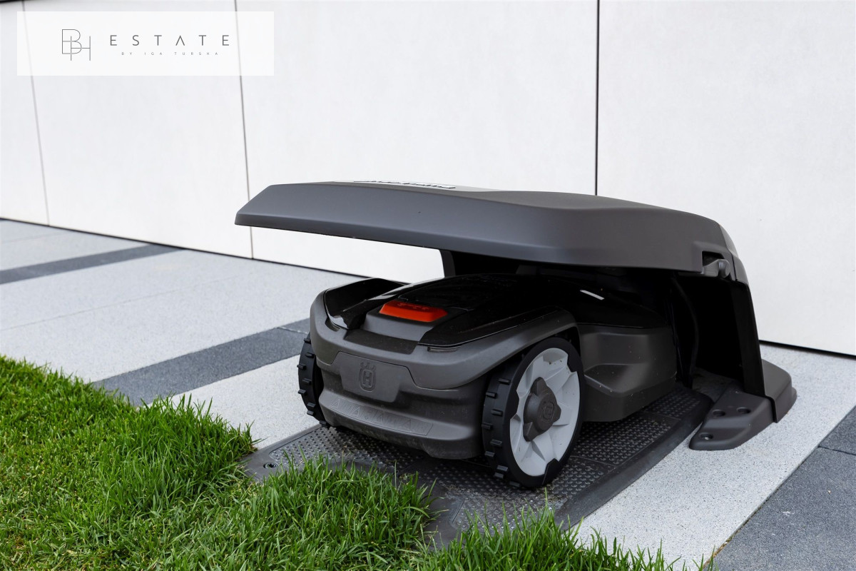 Mała architektura – na ogrodzie trawa z rolki, siatka p/kretom, poprowadzona instalacja do automatycznego podlewania ogrodowego 4 sekcyjna na sterownikach SOLEM i Hunter. Koszenie trawy odbywa się poprzez zastosowanie automatu koszącego firmy Husqvarna.